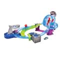 Ігровий трек "Біла акула" від Dickie Toys — це яскрава моторизована гоночна арена з великою петлею, водними тунелями та небезпечною великою білою акулою, яка може напасти будь-якої миті.
