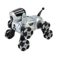 Футуристичний дизайн у сріблястому кольорі, з виразними та дружелюбними оченятами, що одразу привертає увагу. Рухливий та слухняний, песик вміє вставати на задні лапки, їздити у різні сторони, виконувати трюки, команди та навіть віджиматися. Реакція на дотики та звуки завдяки сенсорам, дозволяють песику відповідати на ласку та взаємодіяти з дитиною. З пульта можна обирати увімкнення звукових та світлових ефектів. При необхідності можна їх вимкнути. 8 колес роликового типу - забезпечують відмінну стійкість та прохідність на будь-яких поверхнях. Завдяки рухливій конструкції колес, вони легко трансформуються та придають собаці різні положення. Є демо-режим, який демонструє всі функції та режими робопесика. Виготовлений з безпечних та міцних матеріалів, стійких до активних ігор.Розвиток: розвиває уяву, логіку, мислення, уважність, емоційне сприйняття, навички турботи.