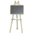 повна висота дошки разом з вушками — 117 см; максимальна ширина — 47 см; розмір дошки — 47 х 33 см; розмір поля для малювання — 43 х 29 см.Магнітна дошка для малювання складається дуже легко, все просто і продумано до дрібниць. Ніжки мольберта вставляються одна в одну, між ними кріпиться піддон, в якому будуть зберігатися маркери і крейда для малювання.