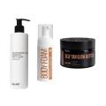 Набір забезпечує повноцінний догляд за шкірою тіла: від делікатного очищення до оновлення та рівномірного тону з ефектом сяйва. Крем-гель з пребіотиками м’яко очищує шкіру, підтримує її мікробіом і забезпечує відчуття комфорту без пересушування. Відлущувальна пінка з кислотами вирівнює мікрорельєф, усуває огрубіння. Баттер-автозасмага інтенсивно живить та надає природний бронзовий відтінок. Ніжна формула крем-гелю з пребіотиками на основі суміші інноваційних натуральних ПАР Genagen 3SB та GlucoTain liquiFlex м'яко та ретельно очищає поверхню шкіри від забруднень, не ушкоджуючи природну гідроліпідну плівку. Вміст натуральних екстрактів алое та ромашки допомагає підтримувати оптимальний рівень зволоженості шкіри, робить її пружною та гладенькою. Завдяки пребіотику Inulin гель дбає про мікробіом шкіри – природний бактеріальний фон організму, знижує можливість виникнення запальних процесів, усуває почервоніння та подразнення на шкірі. Забезпечує тривале відчуття свіжості та чистоти. Вишукана парфумована композиція крем-гелю огорне теплим серпанком, зітканим з нот кориці, ванілі та сандалу. Функціональна пінка для тіла базується на принципі контрольованої кератолітичної дії (здатність речовин розм’якшувати, відлущувати та видаляти ороговілий шар шкіри), поєднуючи делікатне очищення з кислотним оновленням. Формула розроблена для корекції огрубіння, фолікулярного кератозу та нерівного мікрорельєфу, що робить її незамінним етапом у сучасному догляді за тілом. Активна формула містить 4% AHA-кислот (гліколеву, яблучну та винну), 1% BHA (саліцилової кислоти) та 1% гліколевої кислоти. Збалансований рН 4,1–4,45. AHA-кислоти працюють на поверхні епідермісу, розчиняючи ороговілі клітини та стимулюючи природну регенерацію. Саліцилова кислота проникає в пори, очищуючи фолікули та розм’якшуючи кератинові пробки. Баланс між ексфоліацією та комфортом забезпечують сечовина й ніацинамід. Сечовина інтенсивно пом’якшує грубі ділянки та утримує вологу в глибоких шарах дерми, запобігаючи пересушуванню після очищення. Ніацинамід зміцнює природний ліпідний бар’єр, заспокоює подразнення та підтримує загальний здоровий стан шкірного покриву. Автозасмага поєднує поступовий ефект засмаги, інтенсивний догляд і делікатне сяйво шкіри. DHA забезпечує рівномірне проявлення без плям і смуг. Антиоксиданти вітамін Е та аскорбіл пальмітат захищають шкіру та підтримують її доглянутий вигляд. Комплекс натуральних олій — какао, ши та кокосової — глибоко живить шкіру, усуває сухість та робить її гладкою й еластичною. На відміну від класичних засобів, засмага проявляється м’якше та поступово, повноцінний результат стає помітним через 24 години після нанесення. Формат живильного баттеру забезпечує інтенсивне зволоження шкіри, дозволяючи самостійно регулювати інтенсивність відтінку, що робить його оптимальним вибором навіть для новачків. Завдяки мінеральному шиммеру засіб надає тілу делікатного бронзового сяйва і шкіра виглядає більш гладкою, з ефектом «soft glow». Теплий горіхово-ванільний аромат із легкою цитрусовою нотою робить використання баттеру особливо приємним і створює відчуття SPA-догляду. До набору входять: Крем-гель для душу з пребіотиками Hillary Microbiome Care Prebiotic Body Wash, 250 мл Мʼяка відлущувальна пінка з кислотами для тіла Hillary Soft Exfoliation AHA Body Foam, 150 мл Баттер-а