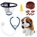 м’яка іграшкова собачка; будка; стетоскоп; шприц; ветеринарний конус; іграшкова їжа та миска.